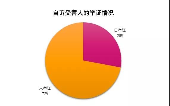 自诉受害人就对方存在家庭暴力行为而向法院举证的比例仅为28%。