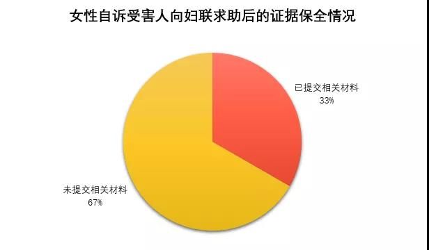 在女性自诉受害人曾向妇联求助的案件中,女性自诉人在举证时向法院提交向妇联求助材料的案件比例仅为33%。