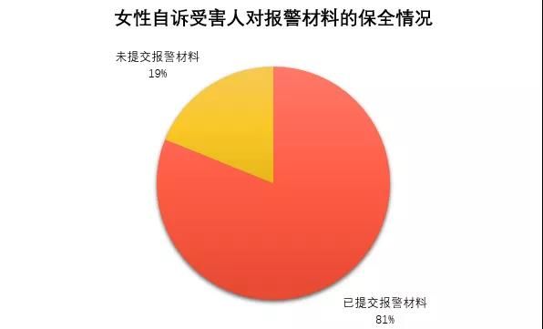 女性自诉受害人曾因遭受家庭暴力而向警方求助的案件中,女性自诉受害人向法院提交报警材料的案件比例为81%。