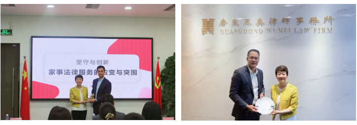 活动伊始,五美律所合伙人欧美欣律师担任主持,向参访团介绍了五美律所的发展历程、核心业务与品牌理念。她提到,五美律所作为华南地区首家专注婚姻家事与财富传承的专业化律所,秉持“惠人、敬业、依仁、精进、有度”的价值观,不仅深耕家事争议解决、财富传承等法律服务,更通过“五美家事沙龙”“家事律师薪火实战训练营”及“法暖夕阳”等品牌活动,构建了专业资源共享与行业赋能的生态平台。