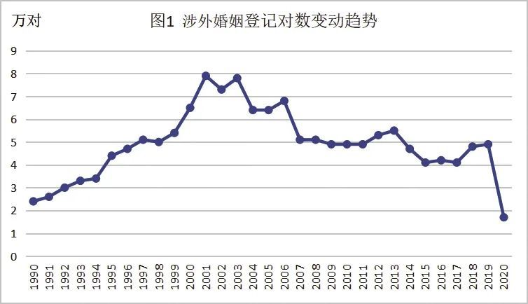 涉外婚姻登记对数变动趋势  数据来源:《中国民政统计年鉴》